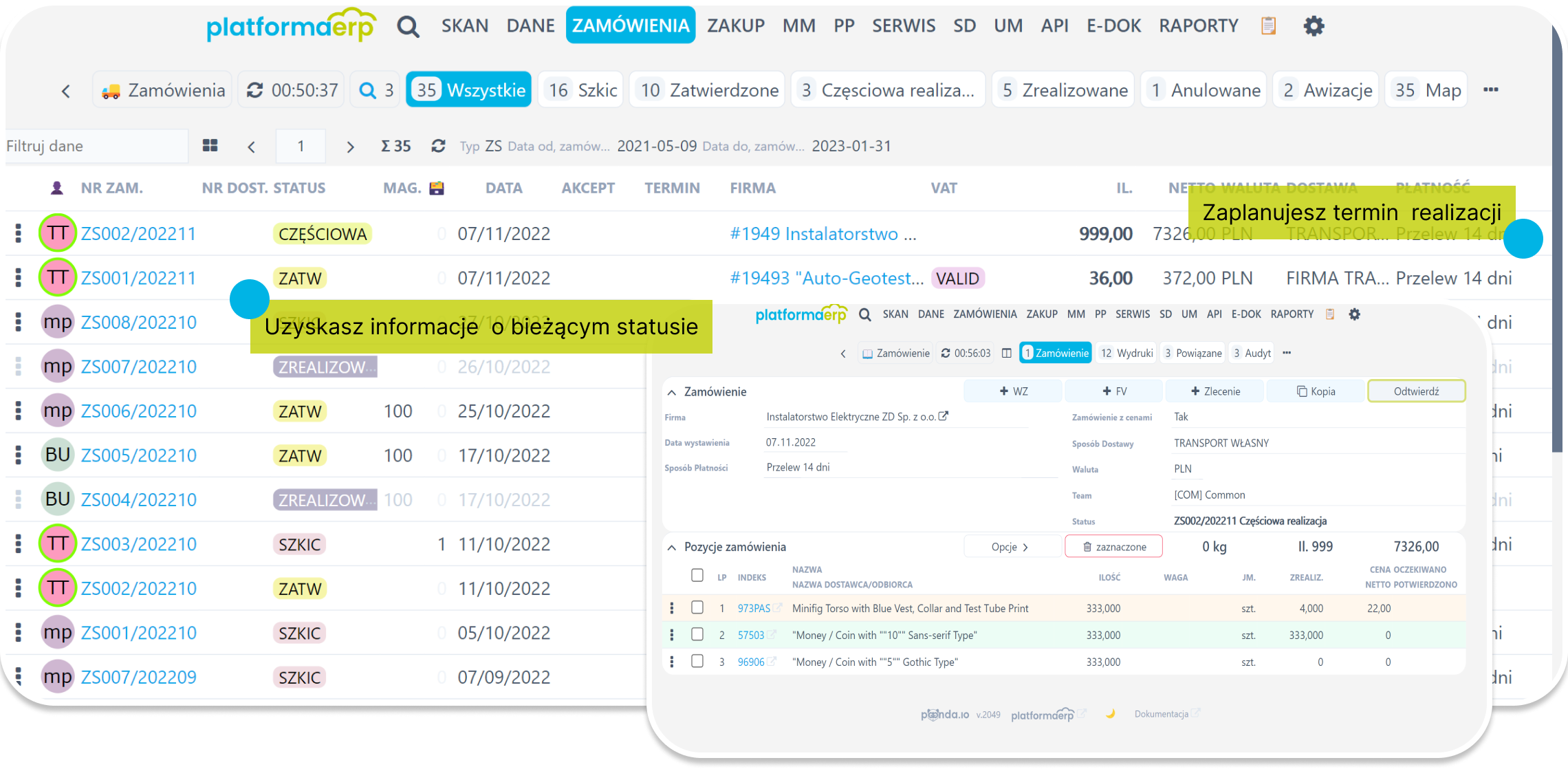 - Zyskasz wgląd w przebieg transakcji. Cała komunikacja z kontrahentem jest w systemie platformaERP.
